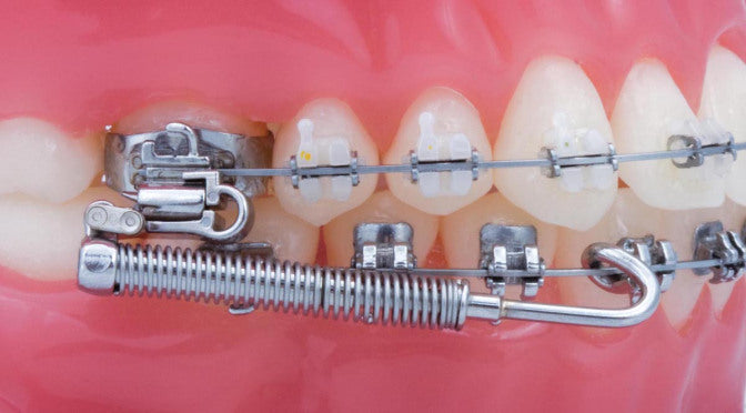 The EZ2 Module allows for more consistent installation and automatically prevents the spring from pivoting toward the cheek. The EZ2 module can be used only with an occlusal headgear tube and has permanently marked indicators for the left and right sides