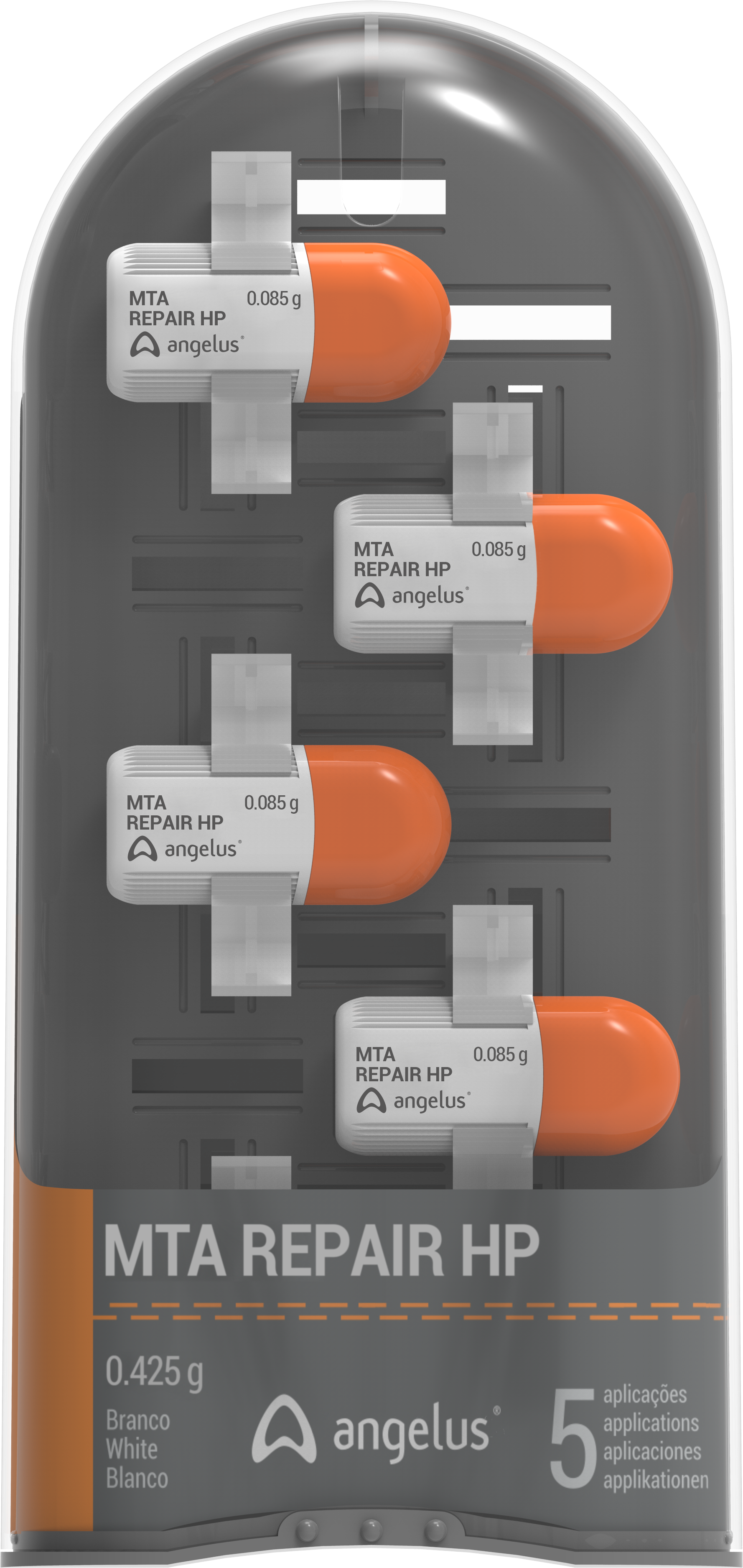 MTA (Mineral Trioxide Aggregate) has its established use in Endodontics due to the clinical results proven through numerous scientific studies. However, due to the physical properties inherent to the powder of the product, the “sandy” consistency hinders manipulation and transport of the material to the site of repair. To improve these characteristics, ANGELUS® has developed a new formulation called MTA REPAIR HP – “High Plasticity” MTA. This new formula maintains all the chemical and biological properties of the original MTA, which guarantees the success of the treatment, but changes its physical properties of manipulation. The result is a product with greater plasticity, facilitating manipulation and insertion in the dental cavity