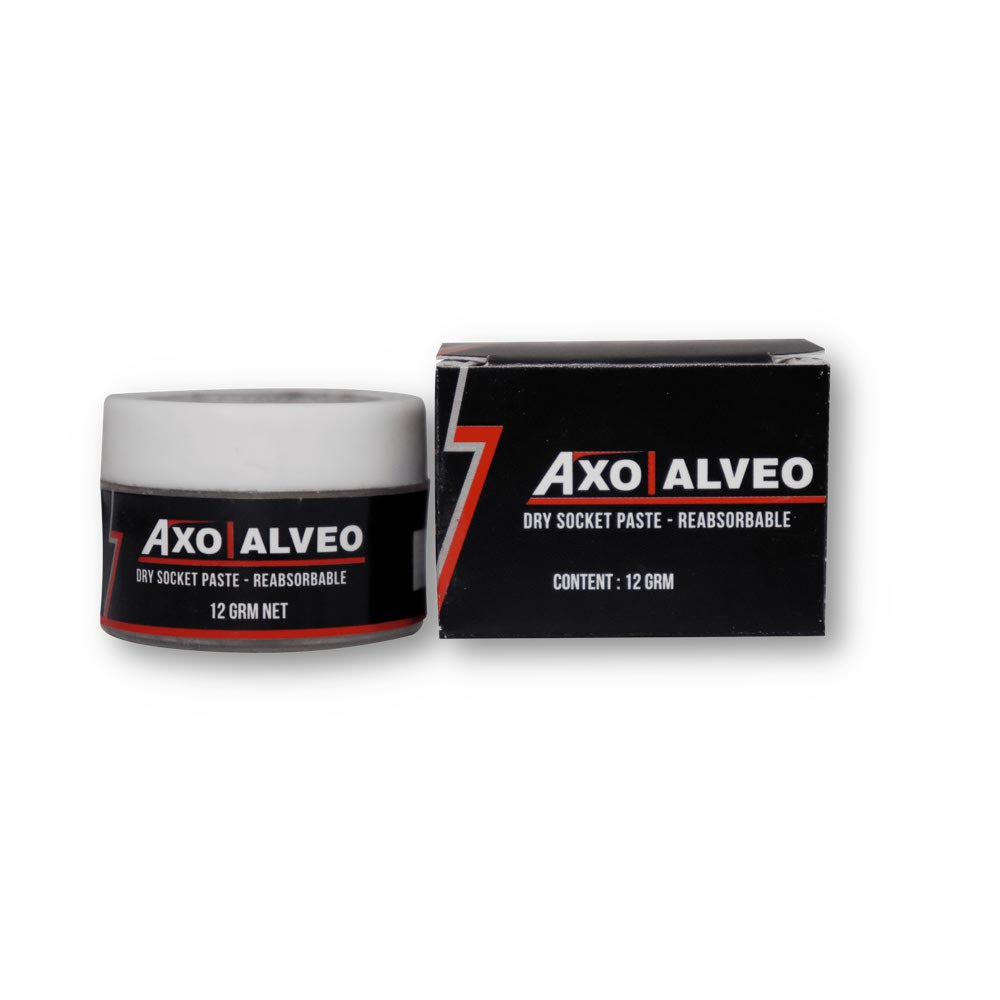 AXO | ALVEO is a paste used as dressing in case of dry socket or post-extraction dressing following a difficult or traumatic extraction in patients with history of dry sockets.