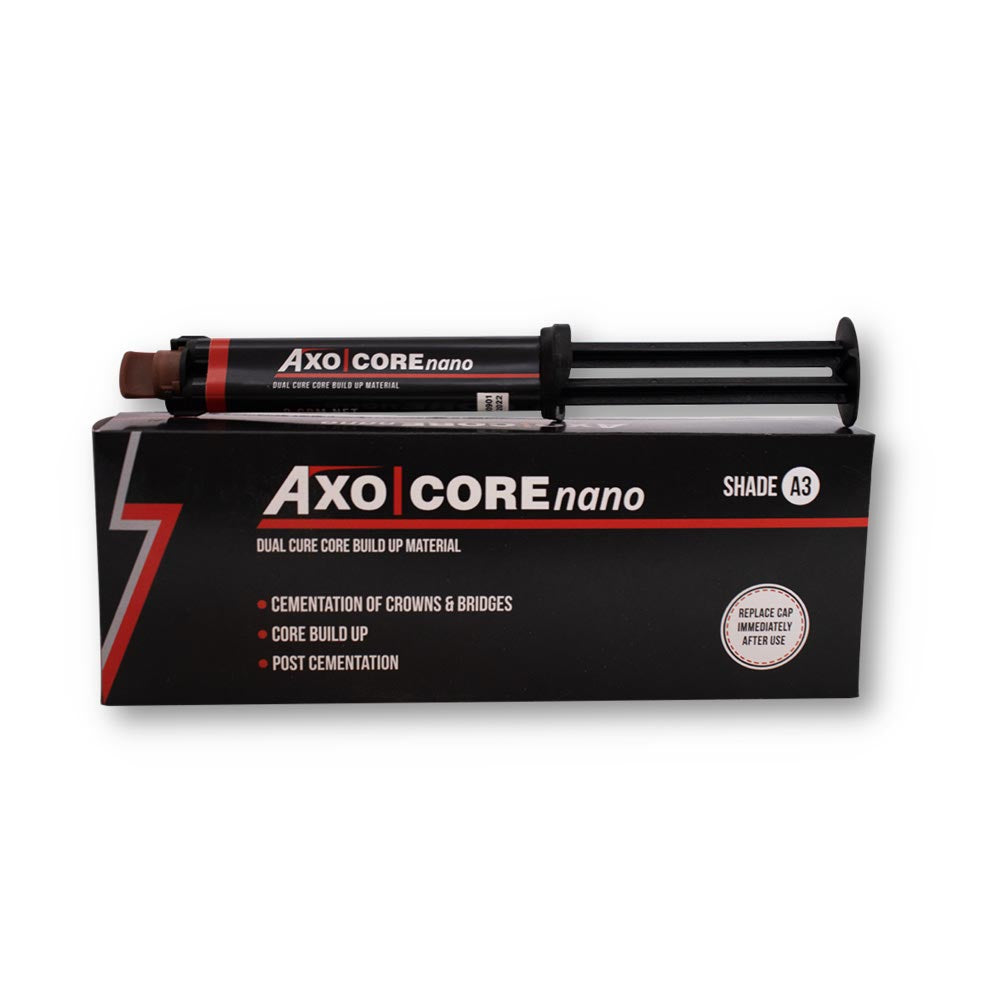 AXIMACK AXO Core Nano | Dual-Cure, Automix, Nanofilled, And Radiopaque, Composite Core Buildup Material Consists Of Multi-Functional Acrylic Resins And NANO Sized Particles Of Inorganic Fillers