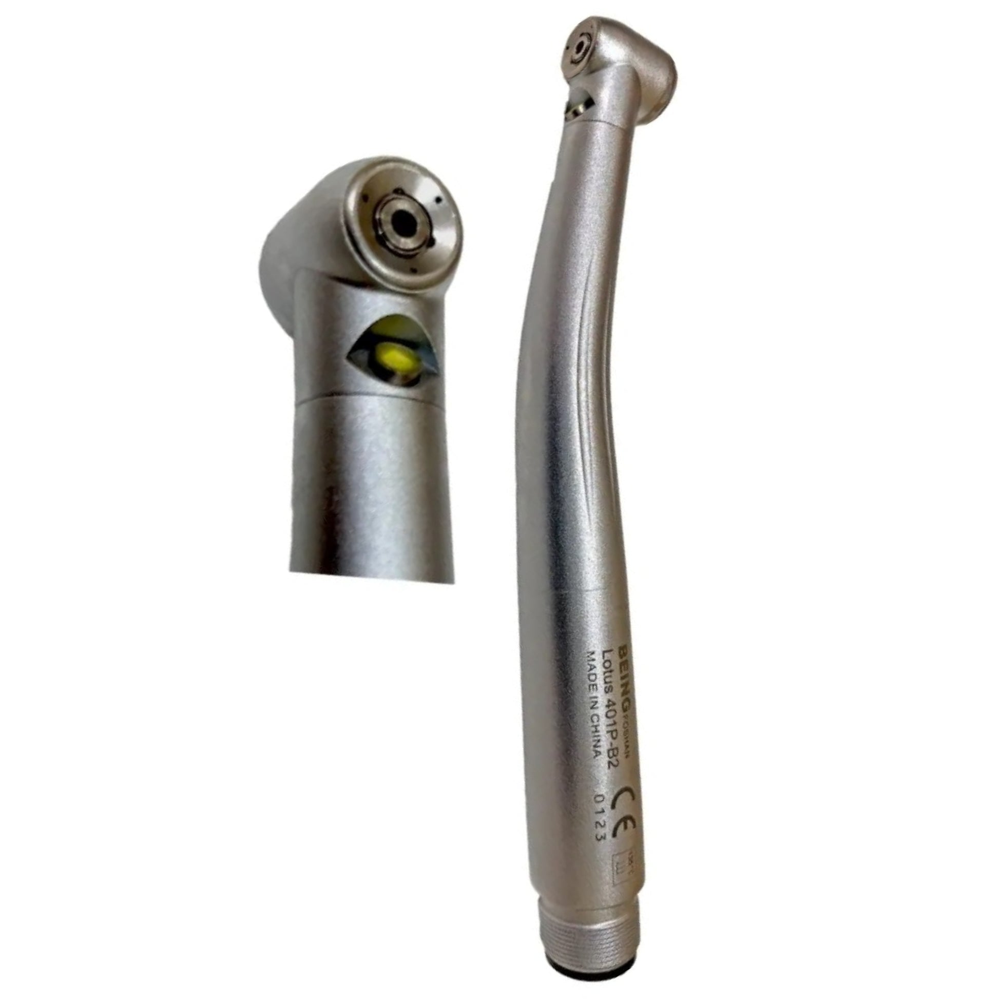 BEiNG Foshan 401P-B2 Standard Head LED Airotor Handpiece is designed to deliver powerful performance with enhanced visibility. Featuring an integrated LED light, this handpiece offers an improved view of the treatment area, supporting precision in clinical procedures. With a rotational speed of 380,000–450,000 rpm and optimal air pressure between 180–250 KPa, it ensures efficient tooth preparation with reduced vibration and noise (≤70dB).