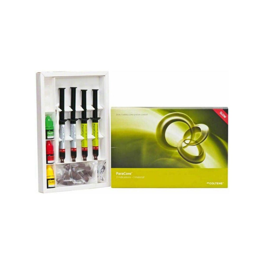 COLTENE ParaCore Slow Intro Kit is a dual-cure resin-based material developed for core build-up, post cementation, and cementing of indirect restorations. Its composite formulation, which includes methacrylates, fluoride, barium glass, and amorphous silica, provides both mechanical strength and radiographic visibility.