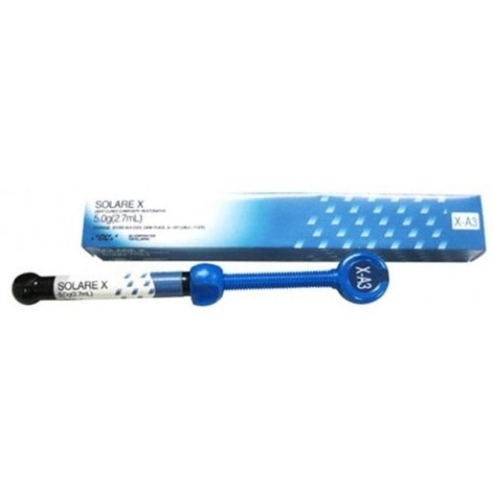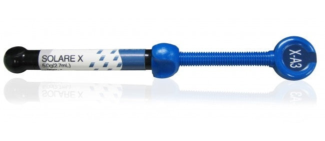 GC Solare X is a universal composite resin restorative material that can be used for both anterior and posterior tooth restorations. It has unmatchable aesthetic invisibility through its remarkable chameleon effect. About 90% of all the restorations made require only a single shade. Solare X incorporates the use of diverse filler technologies to deliver exceptional aesthetic outcomes. Layering techniques in composite restorations are minimally required when using GC Solare X. Containing nanofillers, glass fillers and pre-polymerised filler materials this composite material replicates the aesthetic properties of the natural tooth. They imitate natural tooth characteristics such as complex light transmission, diffusion and reflection. The pre-polymerised fillers containing lanthanoid fluoride nano-particles contribute to the chameleon effect and the natural tooth like properties.