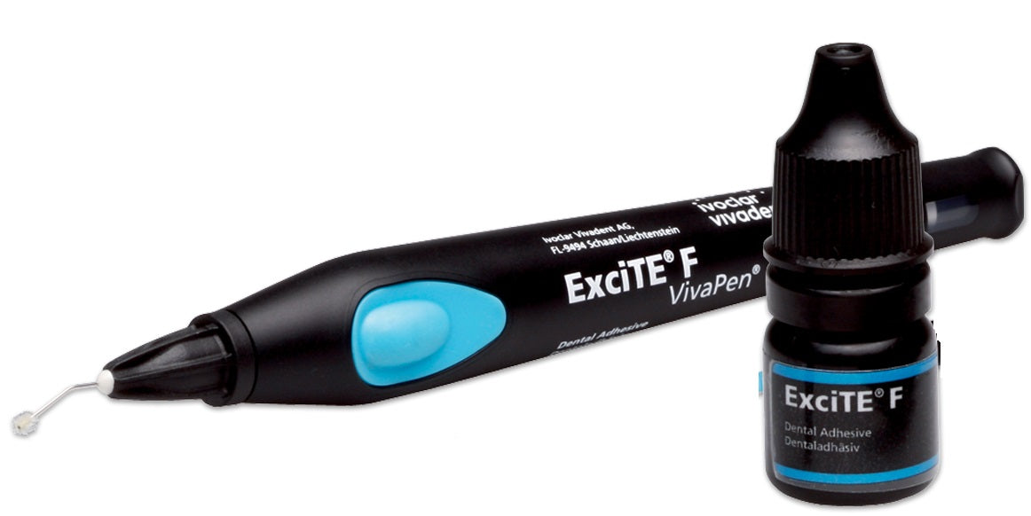 ExciTE F is a light-curing, fluoride releasing, single-component total-etch adhesive. It is used in the placement of direct restorations (composites, compomers) as well as in the adhesive luting of indirect restorations (all-ceramics, composites) involving light-curing. ExciTE F is available in the unique VivaPen, in bottles or in Soft Touch Single Dose vessels