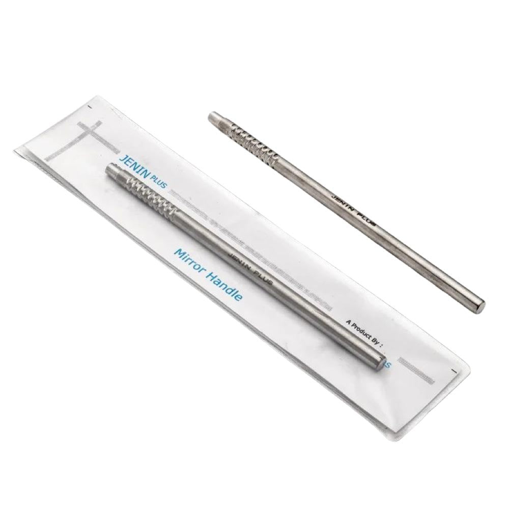 JENIN Mouth Mirror Handle is designed for secure attachment and manipulation of standard mouth mirror heads during dental examinations and procedures. Made from stainless steel, it offers a reliable grip and is built to withstand regular sterilization without corrosion. The handle features a comfortable design for improved control and reduced hand fatigue during extended use.