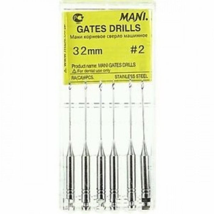 MANI Gates Drills are specialized dental instruments designed to enhance access and precision during endodontic procedures. Featuring a flame-shaped boring head and a slender shaft, these drills are optimized to reduce the curvature at the orifice of root canals, facilitating improved cleaning and precise obturation.