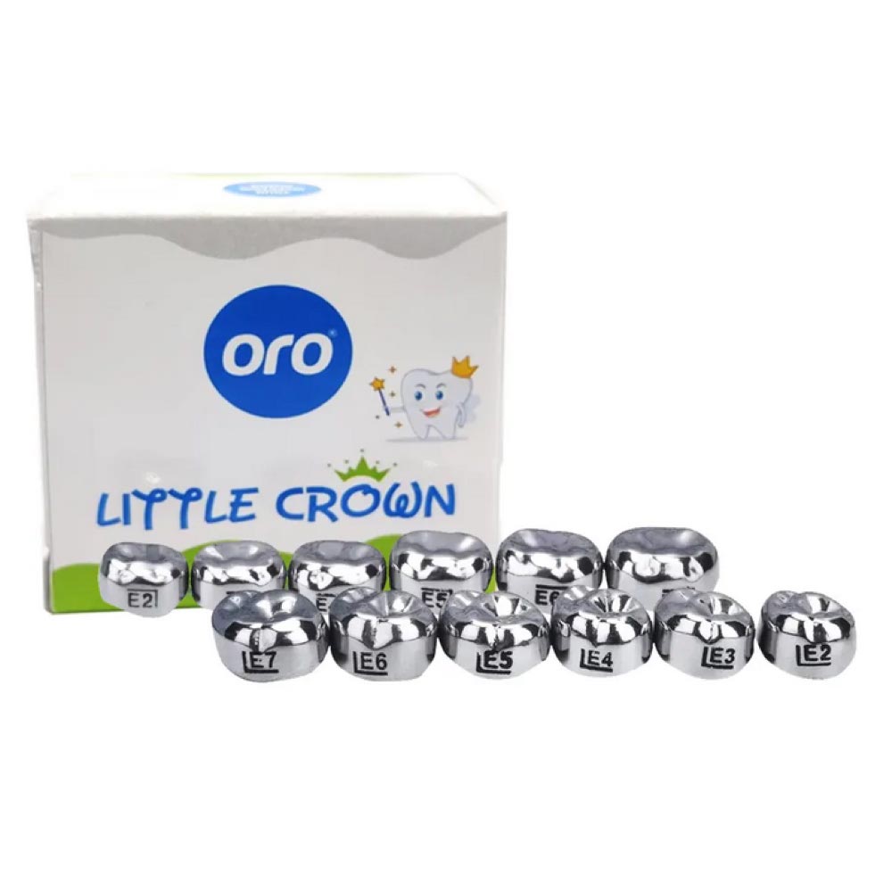 ORO Little Crown for Primary UPPER Second Molar is a pre-formed stainless steel crown designed for pediatric use. Made to fit the anatomical shape of primary molars, it offers a reliable option for restoring decayed or damaged teeth. These crowns are strong enough to handle chewing and grinding forces, making them a practical choice for children.
