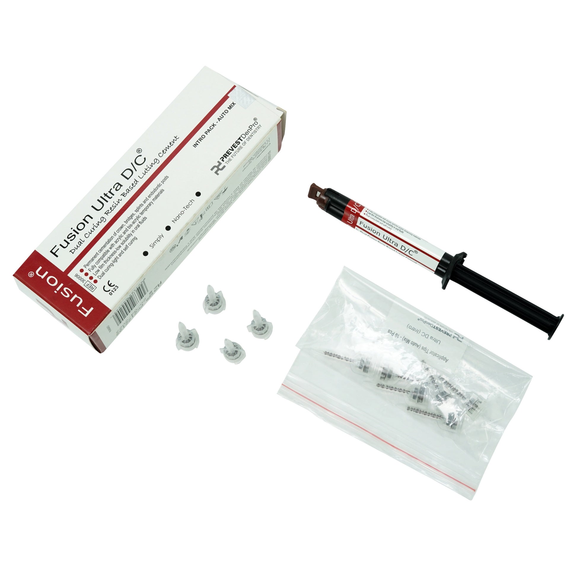 Prevest Fusion Ultra D/C is a dual-curing luting cement designed for the cementation of a wide range of indirect restorations. Its formulation supports bonding to enamel, dentin, zirconia, ceramics, metal, and composite-based restorations. The material dispenses through an automix system, allowing consistent flow and controlled placement during cementation procedures. The dual-cure mechanism enables reliable setting even in areas where light access is limited, while light curing may be used when accessible to complete the procedure efficiently. The cement’s low film thickness assists with proper restoration seating, and its radiopaque fillers make post-operative evaluation straightforward. This Intro Pack is prepared for chairside use in routine clinical workflows.