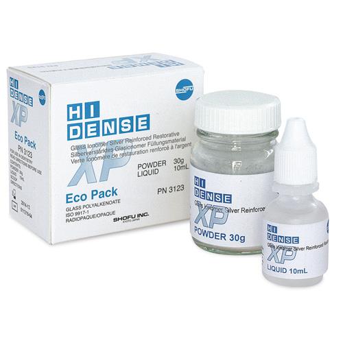 Shofu Hi-Dense Xp Eco Pack is a silver re-inforced glass ionomer cement (miracle mix) which is ideally used for restorations in posterior teeth.