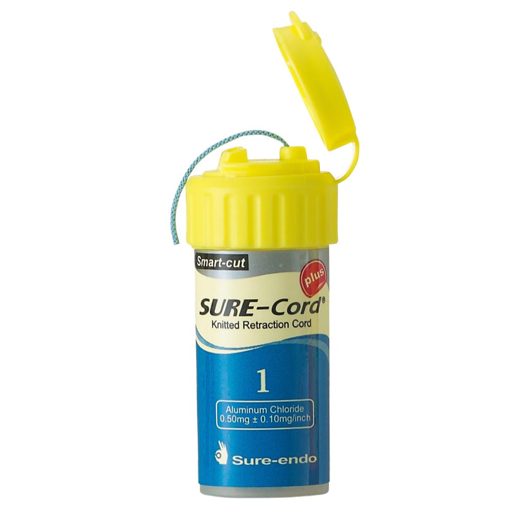Sure-Endo SURE-Cord Plus is a knitted retraction cord made from split microfiber, offering higher absorbency than traditional cotton cords. It is impregnated with aluminum chloride to help reduce fluid in the gingival sulcus and assist in minor bleeding control.
