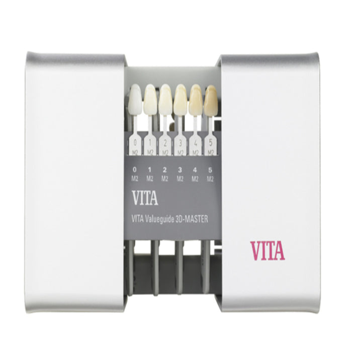 The all-new VITA 3D-Master Linearguide enables the quick determination of precise tooth shades and uses the same scientific principles and 29 shades found in the popular VITA 3D-Master shade guide. The Linearguide features a sleeker, linear design that makes the process of precise shade determination even faster and easier. In two simple steps the final shade is achieved, first by selecting from five value tabs, then by choosing the proper mix of chroma and hue within the selected value range.