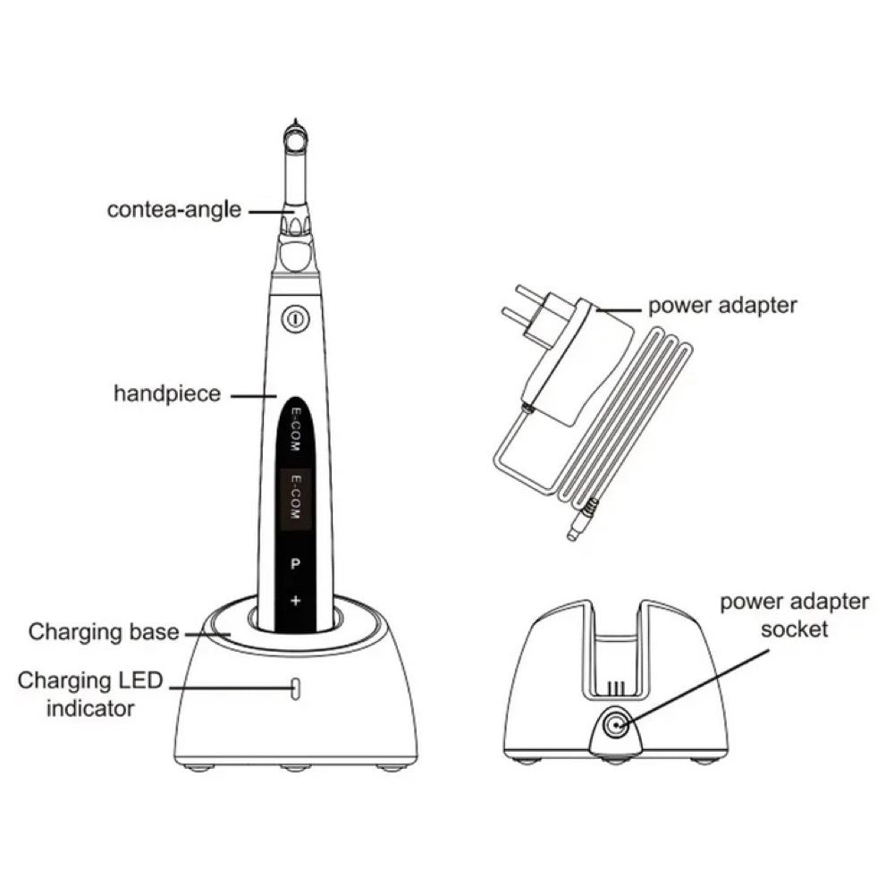 Woodpecker E-COM Cordless Endomotor is a compact, cordless device engineered for efficient and reliable root canal procedures. Designed to improve maneuverability and reduce hand fatigue, the cordless handpiece eliminates tail cord interference while maintaining a comfortable grip.