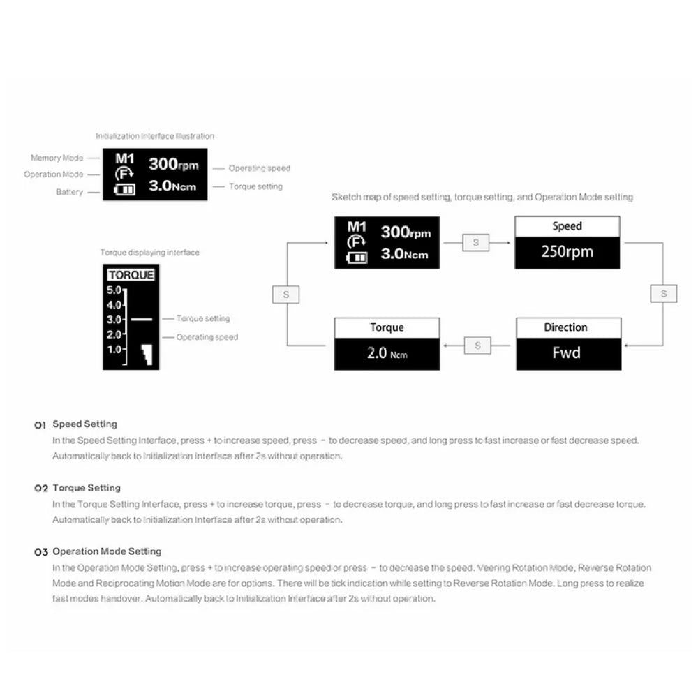 The integrated OLED screen displays speed, torque, and battery levels clearly, even under varying lighting conditions. With nine programmable memory settings, the device supports multiple operational modes, including continuous rotation, reciprocating, and reverse motion, allowing customization for different clinical requirements.