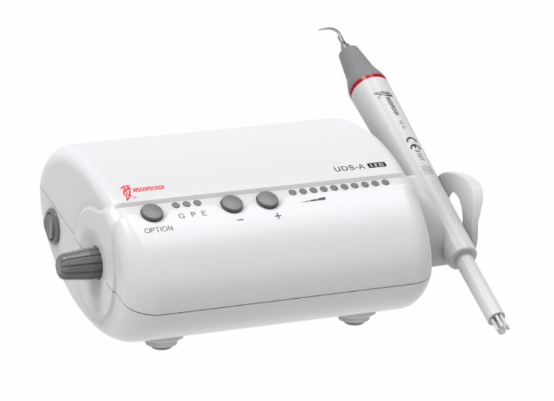 Ultrasonic Scaler UDS A-Led by woodpecker is a multi-function scaler that works in three different modes i.e general, perio and endo with a feature of an automatic frequency tracking system which ensures that the machine always works on the best frequency and perform functions more steadily.The handpiece is detachable with LED function for perfect illumination and can be autoclaved to the high temperature of 135℃ and the pressure of 0.22MPa.